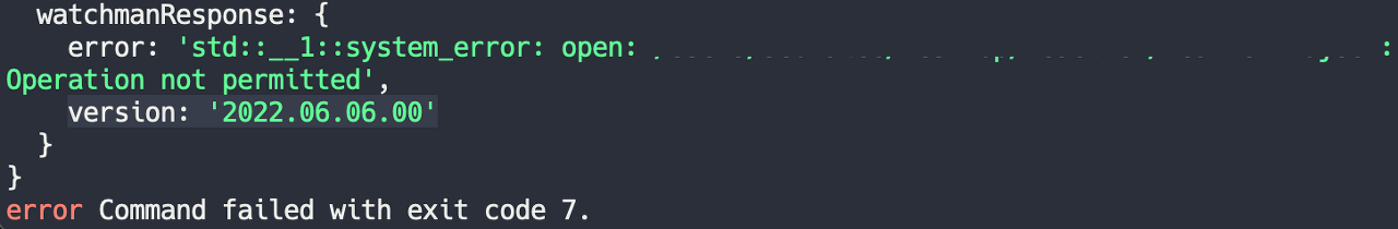 watchmanResponse: { resolve_projpath: path : Operation not permitted , version: '2022.06.06.00'}