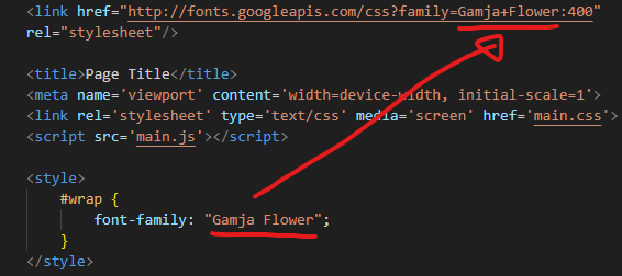<link href="http://fonts.googleapis.com/css?family=Gamja+Flower:400"