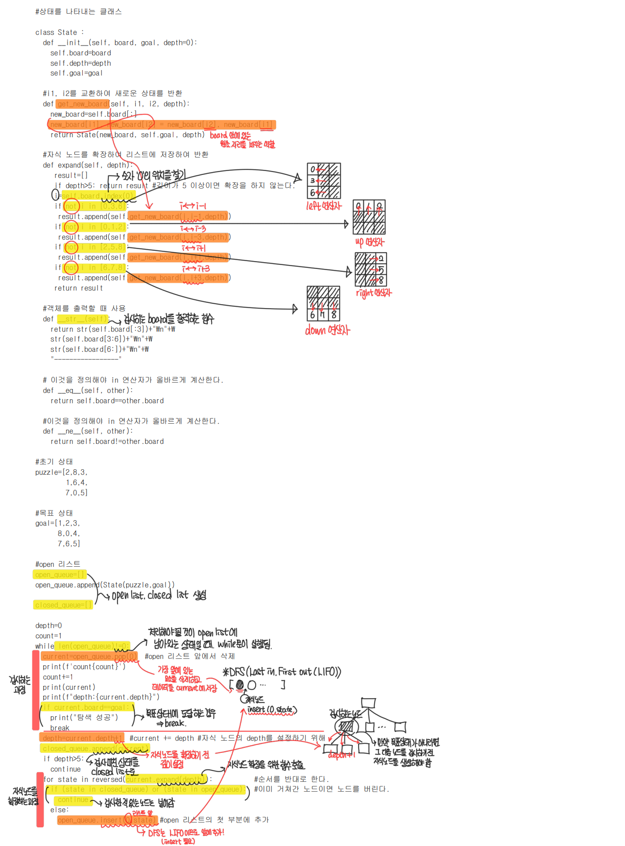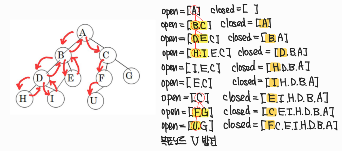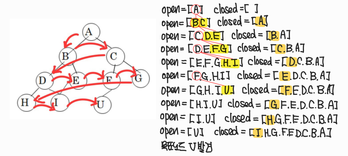 open list의 순서를 작성할 때는 검사하는 상태가 뭔지를 확인하며, 그 자식 노드를 리스트의 앞에서 왼쪽 순서대로 작성해야 한다.