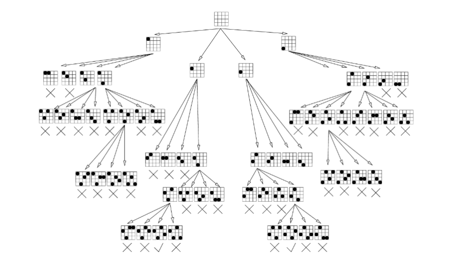 확장된 상태 중 4-queen 문제에 어긋나는 상태는 더 이상 확장하지 않고 멈추는 것을 확인할 수 있다.