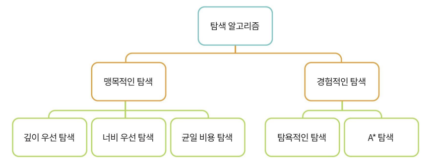 탐색기법마다 개념이 많아 각자 정리한다. 순서대로 맹목적인 탐색(깊이/너비/균일비용) 경험적인 탐색(탐욕/A)로 정리하겠다.