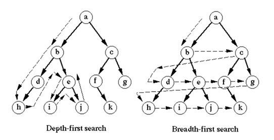 맹목적인 탐색 방법(blind search method) : 목표 노드에 대한 정보를 이용하지 않고, 기계적인 탐색으로 매우 소모적인 탐색을 하게된다. 노드를 확장하는 순서가 달라지는 경우가 많다. (ex. DFS-BFS) (uninformed search 라고도 한다)