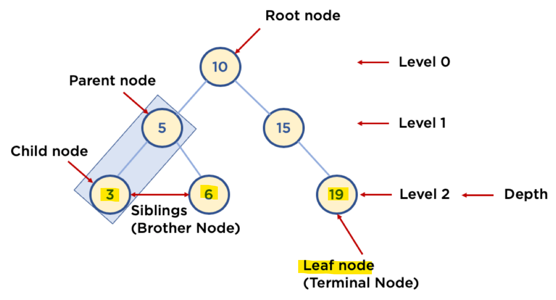 =아래 사진을 기준으로 leaf node는 3, 6, 19 (노란색으로 표기된 곳) 이다.