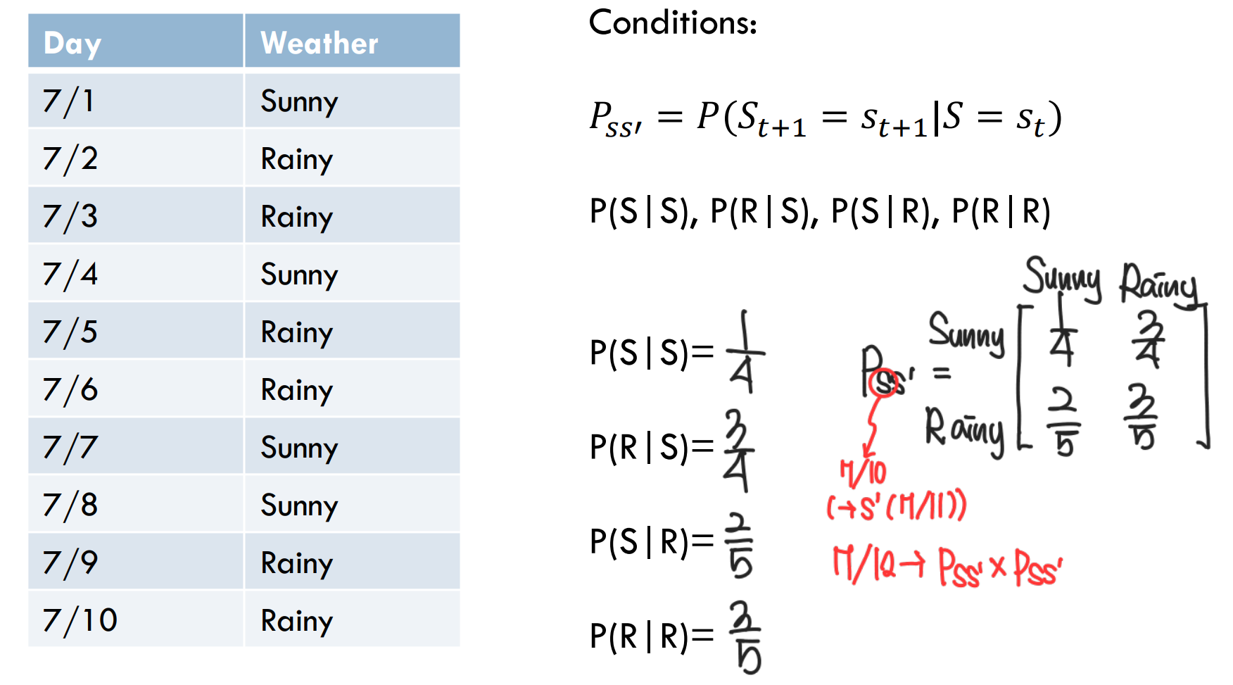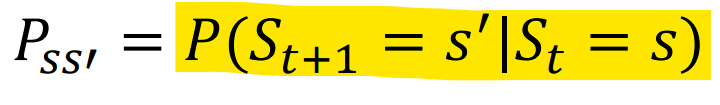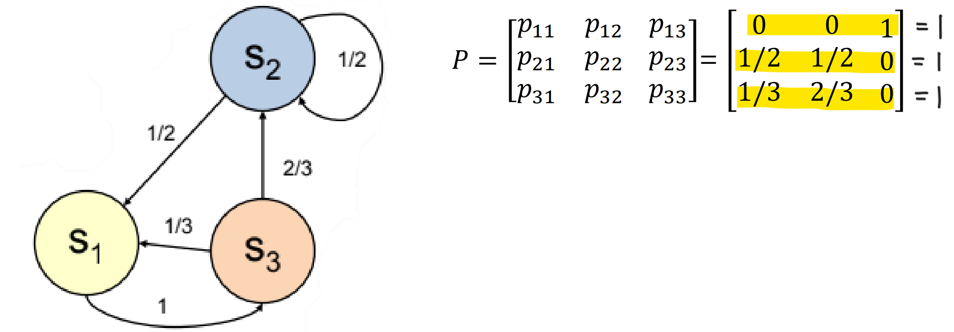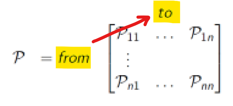 P는 모든 상태 로부터 다음 상태로 로 변할 확률을 나타낸 행렬