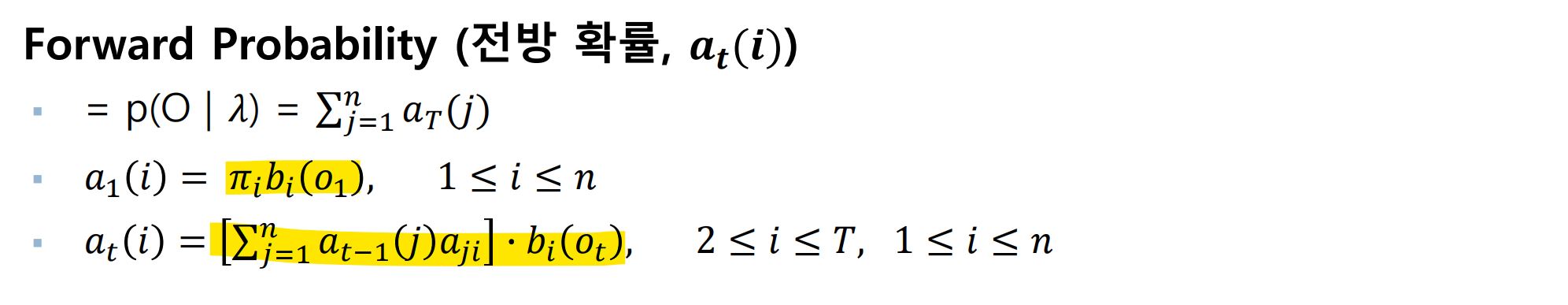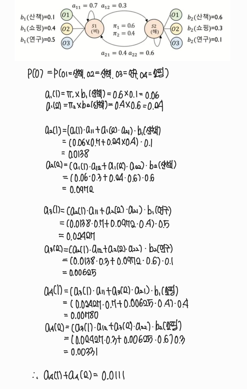 Forward probability는 주어진 Sequence O 가 HMM에 속할 확률 문제에 활용 가능
