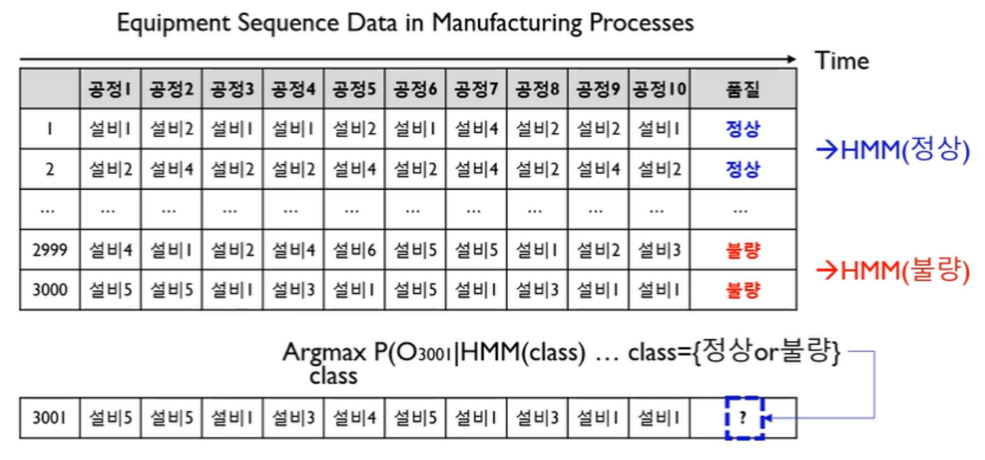관측 시퀀스 : 설비 ID 데이터 / 은닉 시퀀스 : 공정 ID 데이터