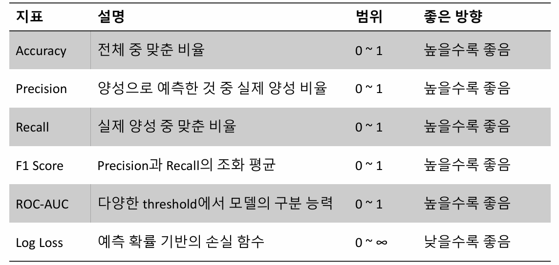 : 이진 분류에서 사용되는 평가 지표