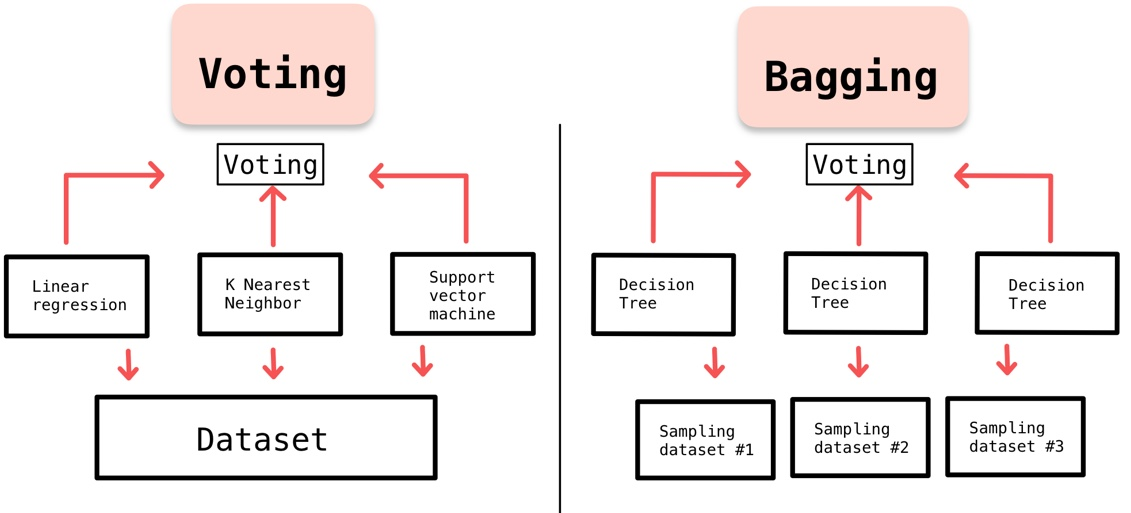 다양한 예측 모델들의 결과에 대해 투표하여 최종 예측을 수행하는 방법