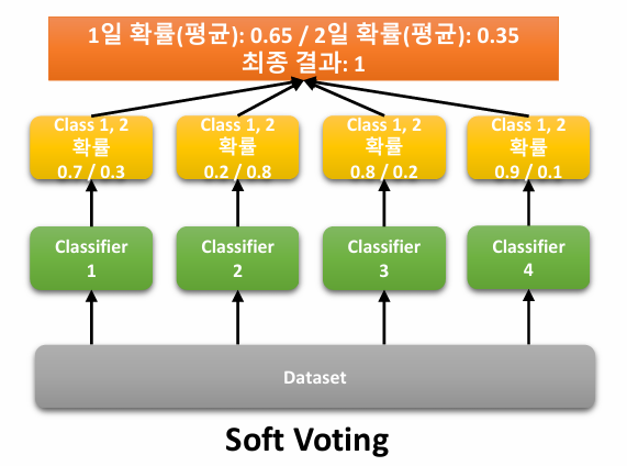 (일반적으로 hard voting보다 soft voting이 성능 더 좋음)