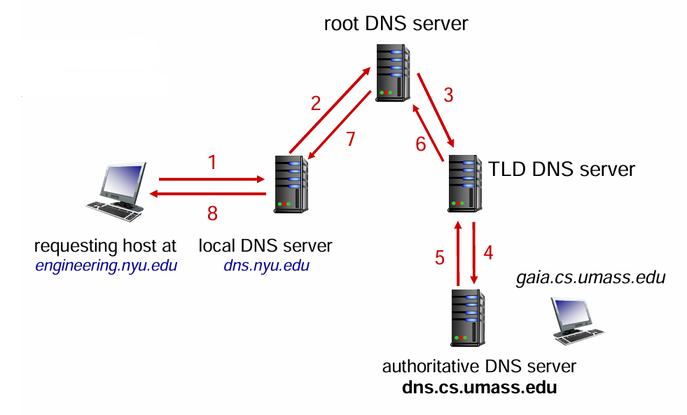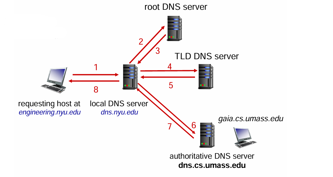 1) Host โ Local DNS ์๋ฒ(dns.nyu.edu)์๊ฒ ์์ฒญ