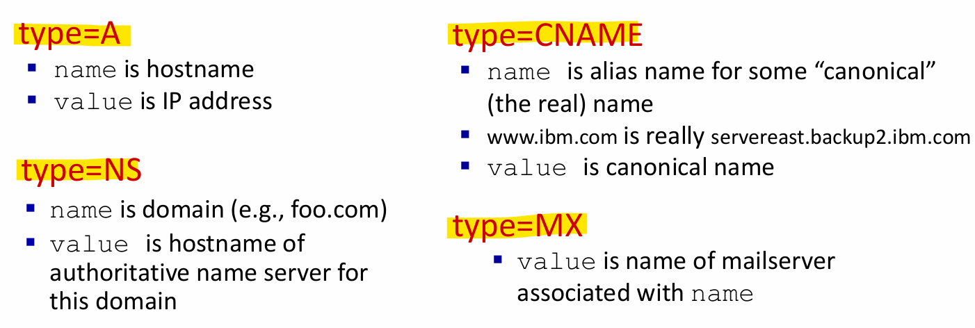 DNS ๋ ์ฝ๋๋ (name, value, type, ttl) ํํ๋ก ์ ์ฅ๋๋ฉฐ,