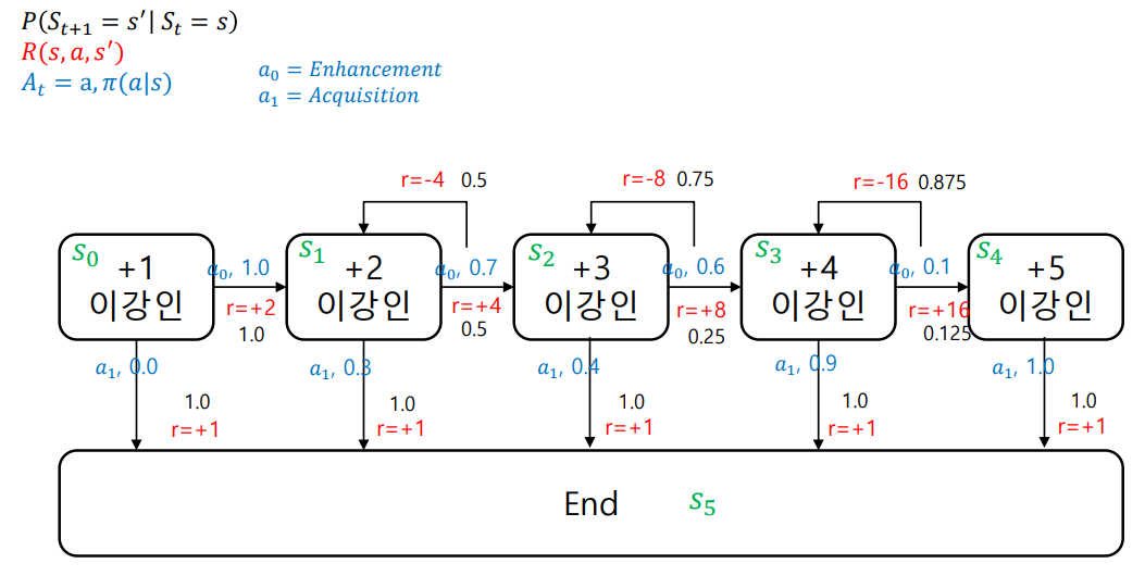 R (reward) : 현재에서 미래상태로 갈 때의 보상(이득)