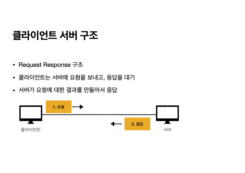 HTTP는 클라이언트가 서버에 요청을 보내고, 서버는 그 요청에 대한 결과를 만들어 응답하는 클라이언트-서버 구조로 동작한다.