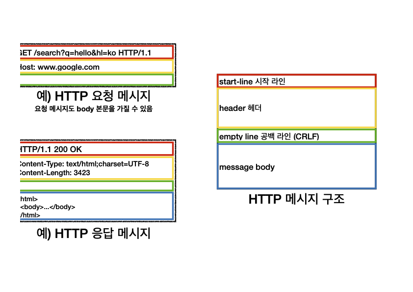 요청 메시지는 reqeust-line, 응답 메시지는 status-line 로 구성되는 것이다.