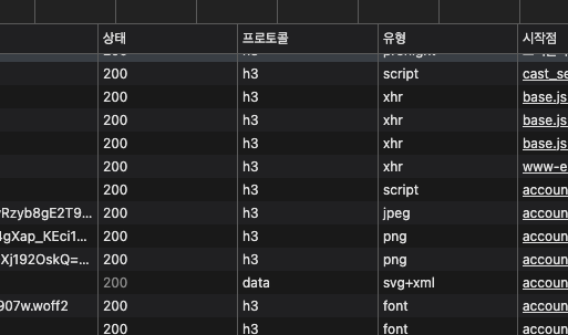 다만, 아직까지는 주로 HTTP/1.1을 쓰고 있지만, 각 HTTP 버전은 개발자 도구의 네트워크 탭에서 ‘protocol’ 항목을 열어 확인할 수 있다.