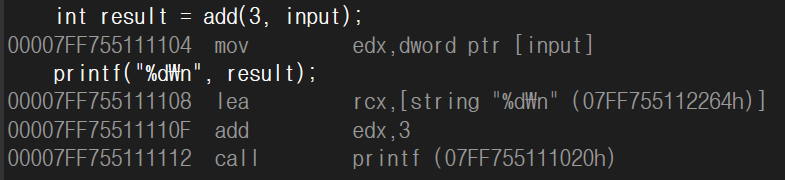 int result = add(3, input);