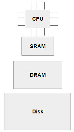 Disks(Hard Disk Drives (HDDs) or Solid State Drives (SSDs)) represent the slowest but largest form of memory in a system. Disks are non-volatile, meaning they retain data even without power. Disks are used for long-term data storage.