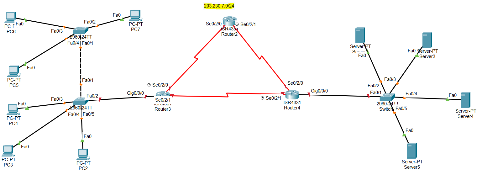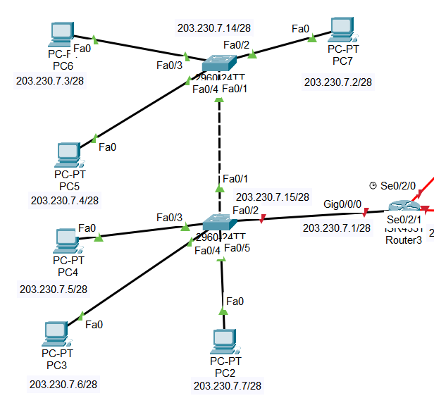 If networks between two routers are assigned 28-bit network, 12 addresses are wasted. Accordingly, a network is divided once again into 30-bit networks, in that each network between two routers needs four addresses.