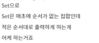 Set중에서 순서보장할때 사용하는 LinkedHashSet을 사용해야할 것이다.