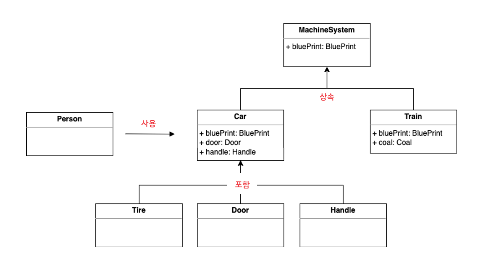 차와 기차를 하나의 공통된 기계 시스템이 만든다고 했을 때 차와 기차 둘다 청사진이라는 객체가 필요하면 기계 시스템에 의해 상속받은 객체라고 할 수 있다.