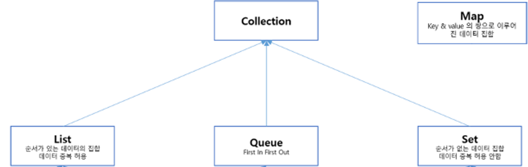 순번으로 조회하지않고 Queue,set과 마찬가지로 인터페이스이다.
