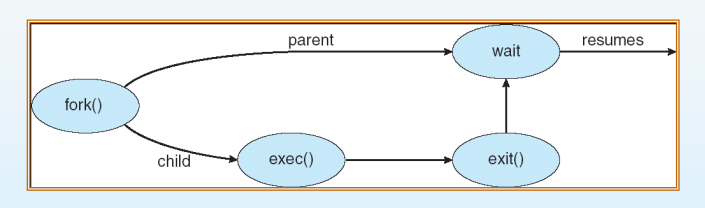 +) 몇몇 시스템에서 vfork를 사용하는데 메모리공간을 카피하는것을 제외하고는 fork랑 같다. 그렇기에 성능적 이득이 있음. 또한 exec()가 실행되는걸 전제로함