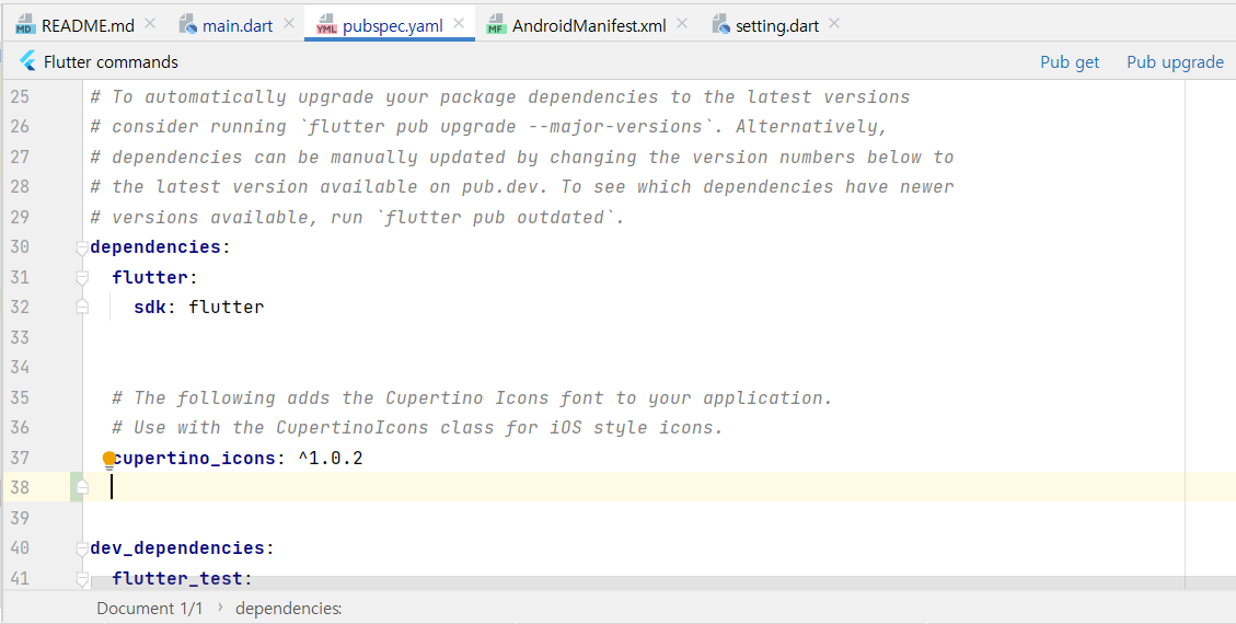 pub get 예시에 나와있는 게 이걸 위한 것이니 따라서 해보도록.