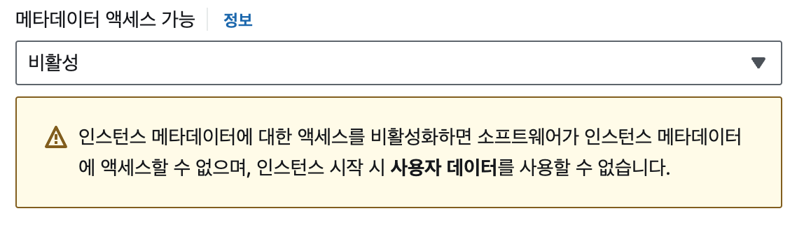 인스턴스 작업 -> 인스턴스 설정 -> 인스턴스 메타데이터 옵션 수정 -> 인스턴스 메타데이터 서비스 활성화- 위에 설정 바꾸고 인스턴스 중지하고 다시 시작해야 적용됨