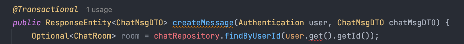 계속 chatRepository에서 findBy유저아이디를 하는 쪽에서 null값이 떴다.