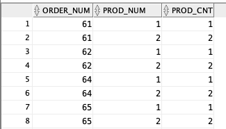 2)groupBy orderNum, prodNum으로 하면 같은 주문번호를 배열로 엮지 못하고,