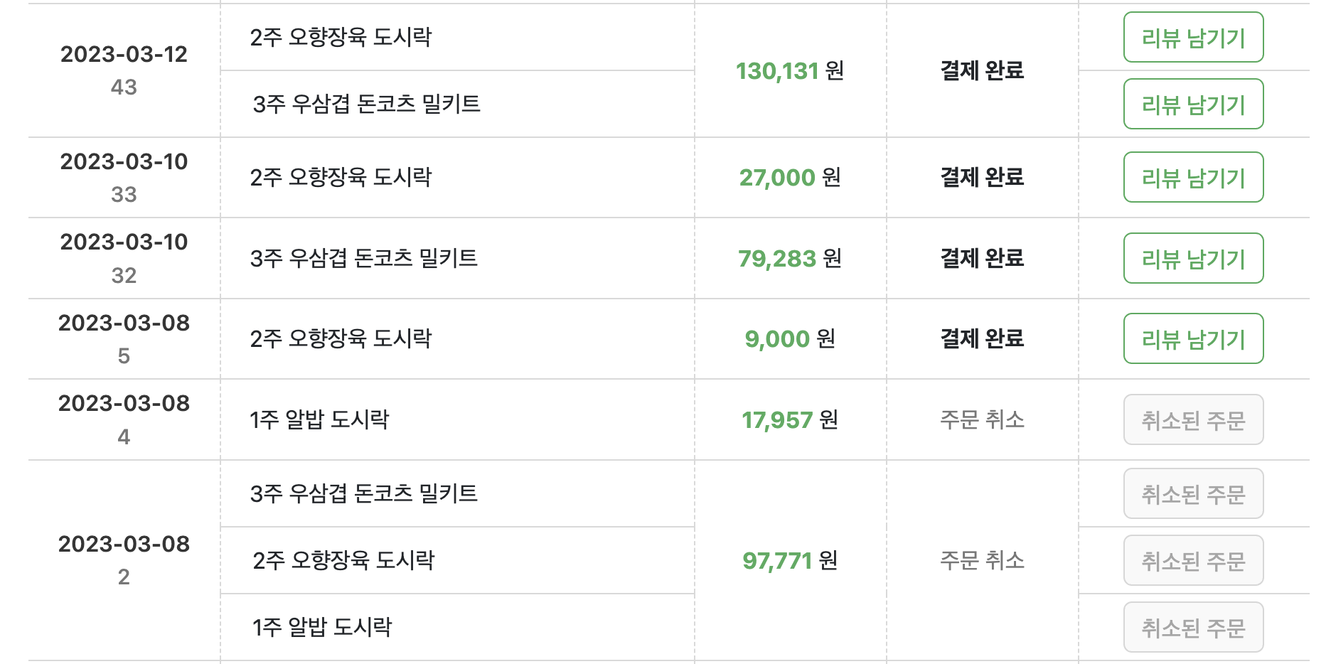 원했던 주문 목록 모습