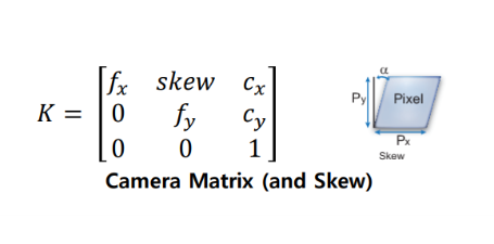 fx, fy : focal lengths. 픽셀 사이즈의 가로, 세로가 같이면 fx=fy