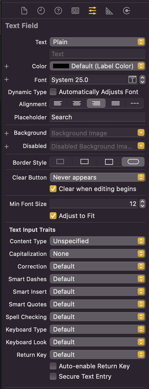 UITextField는 Attributes inspector에서 다음과 같이 설정해줄 수 있다.