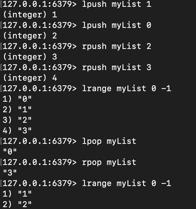 - lrange key s e: s부터 e index의 데이터 반환