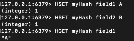 - HGET key field: 입력한 해시 키 밑에 지정한 필드 값 조회