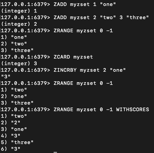 - ZINCRBY key increment member: 항목의 score를 increment만큼 증가