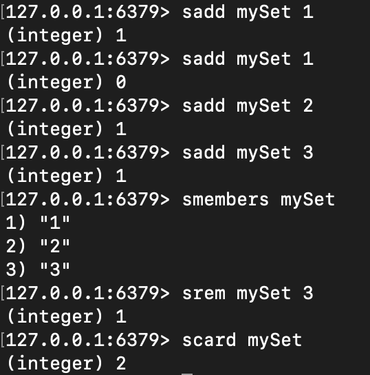 - smembers key: set의 모든 데이터 조회