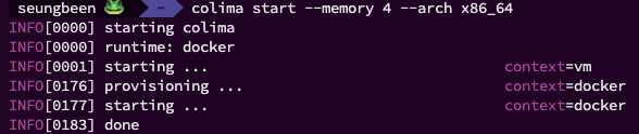 $ colima start --memory 4 --arch x86_64