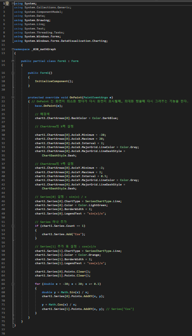 chart1.Series[1].Points.Clear(); 를 통해 그래프가 정상적으로 그려질 수 있도록 한다.