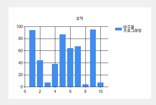 chart1.Titles.Add("성적"); 로 차트의 타이틀이 추가된다.