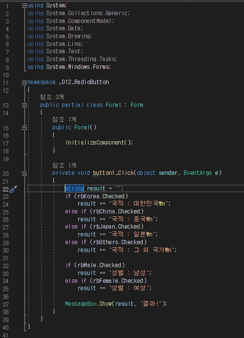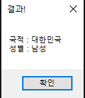 MessageBox.Show(result, "결과!");로 국적을 출력한다.