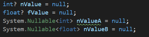 그래서 NUllable이라는 자료형 타입이 생겼으며, 해당 자료형은 값 타입에 null을 사용할 수 있도록 해주며, 값 타입의 데이터에만 사용할 수 있다.