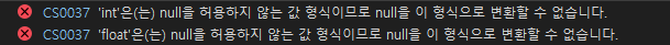 일반적으로 값 타입 데이터에 null을 사용하면 아래와 같이 오류가 발생한다.