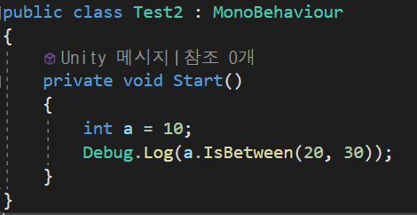 static 키워드를 사용해 확장 메서드를 만들었다. int에는 IsBetween이라는 것이 없기 때문에 원래는 사용할 수 없지만, 확장메서드로 기능을 추가해 int에 해당 기능을 사용할 수 있도록 하였다.