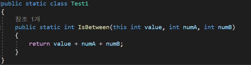 a 는 int 타입이기 때문에 .을 찍어도 IsBetween이 나오지 않지만, 확장 메서드를 통해 기능을 추가했기 때문에 사용할 수 있다.