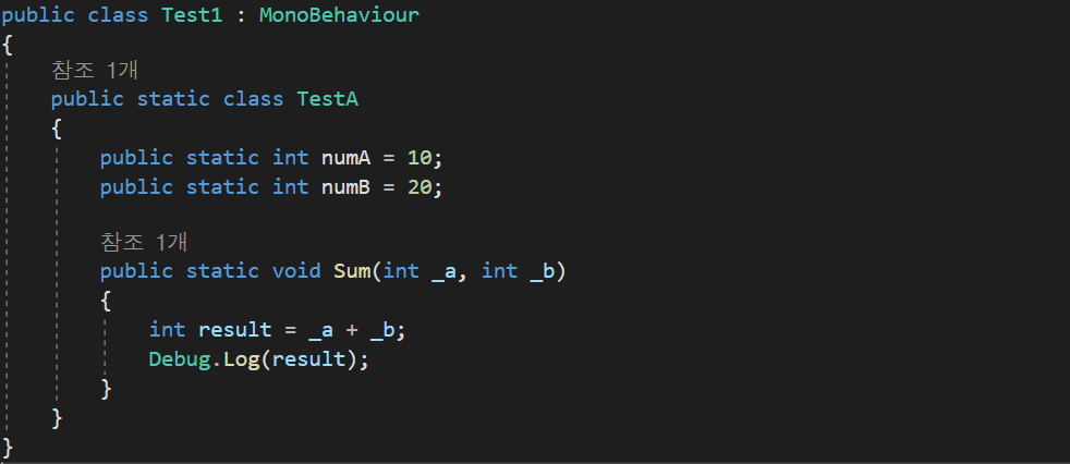 정적 클래스는 정적 변수, 함수 이외에 멤버 변수, 함수 등을 선언하는 것이 불가능하며, 상속과 객체화가 불가능하다.