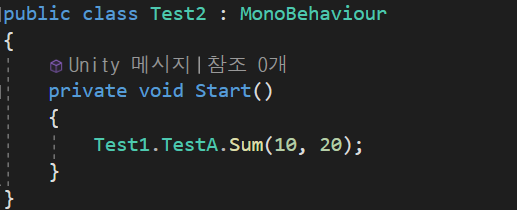 또한, 확장 메서드를 정의하는 정적 클래스는 반드시 최상단 영역에 위치시켜야 하며, 특정한 클래스의 중첩 클래스로는 확장 메서드를 정의하는 것이 불가능하다.