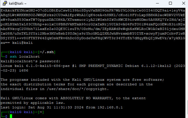 $cat id_rsa.pub > authorized_keys