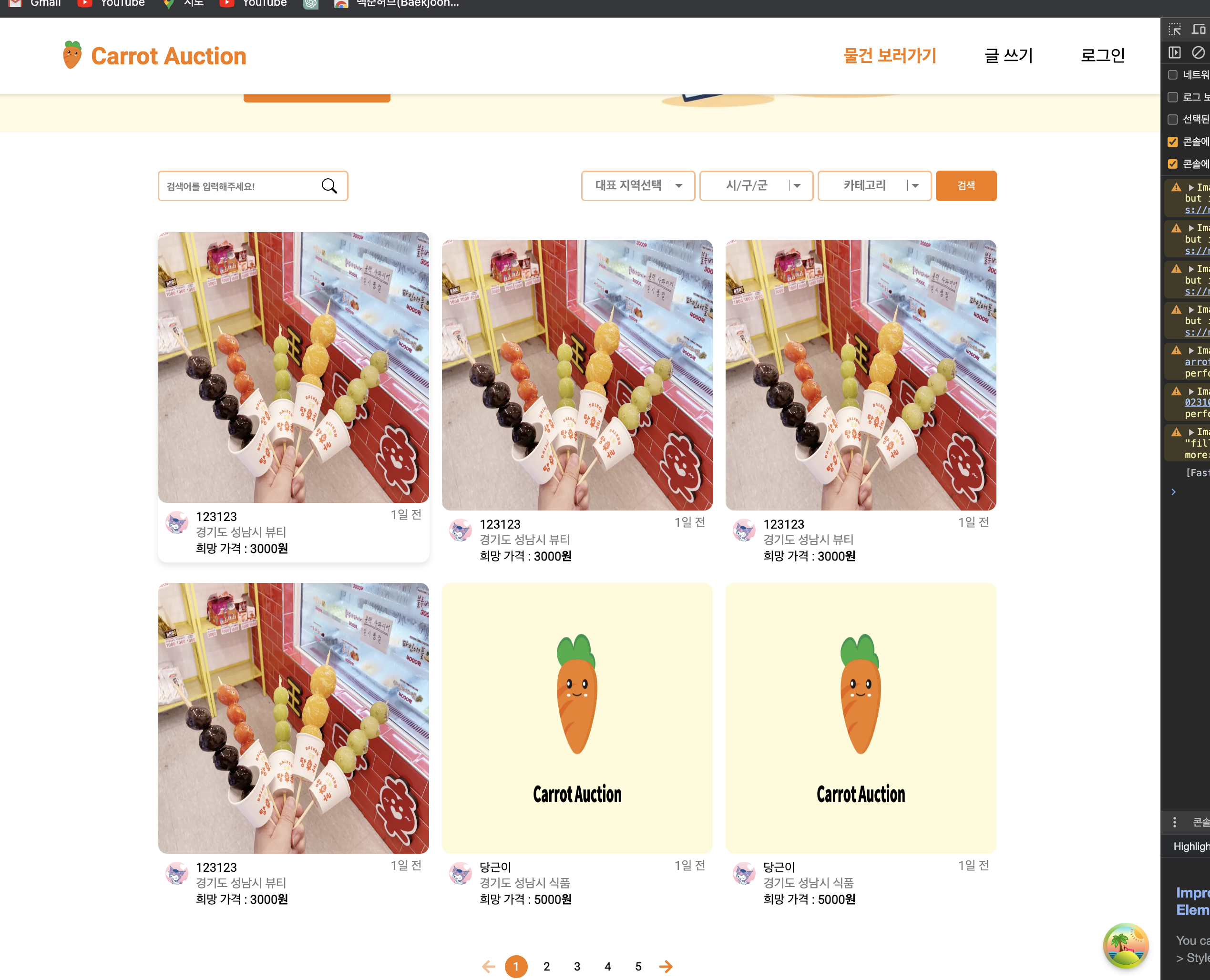 프로젝트를 진행하다가 경매글을 모아보는 페이지를 만들게 되었다.