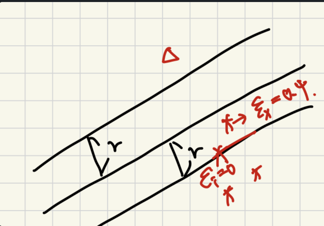 다음과 같이 기존의 Margine에서 추가 term을 둬서 어느정도 Margin 내부에 데이터가 들어오는 것을 허용해주게 됩니다.